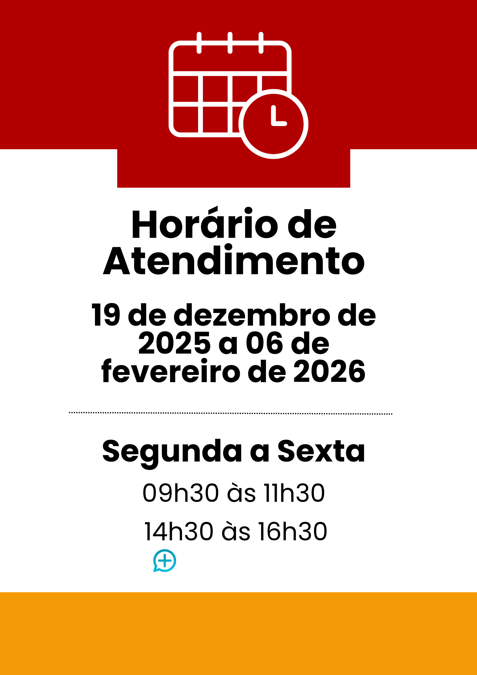 Informamos que, no período de 19 de dezembro de 2025 a 06 de fevereiro de 2026, a Secretaria Acadêmica atenderá nos seguintes horários: